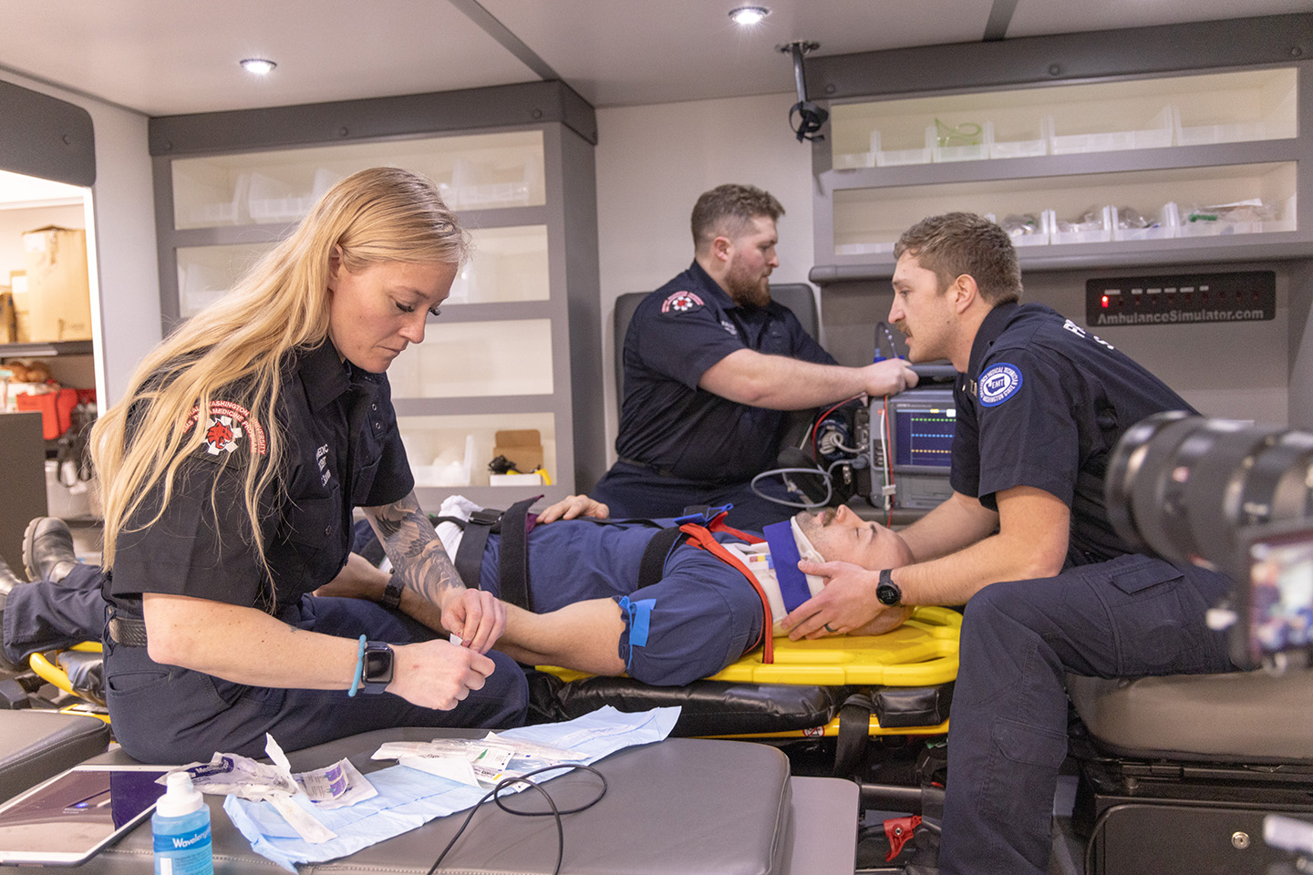 The program also features a simulated ambulance inside the Health Sciences building, as well as an actual ambulance that the students and instructors take into the field for training exercises.