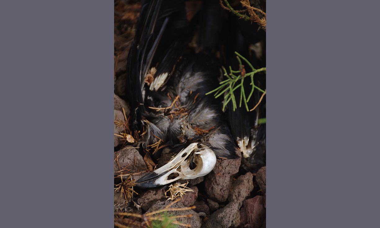 The senior Bachelor of Fine Arts (BFA) student uses photographic images of crows and their bones, as well as depictions of human skeletons in paint, to act as a guide to answers that we as living beings cannot be privy to.