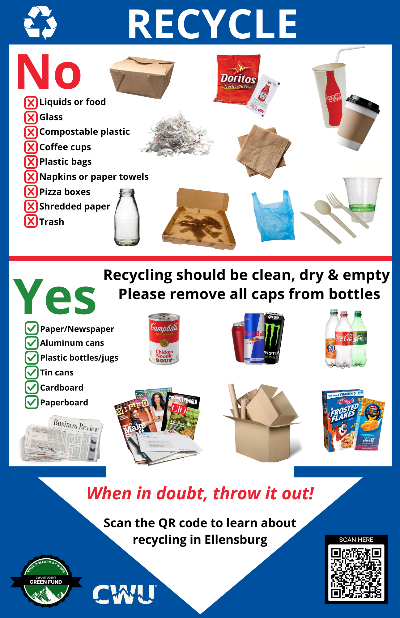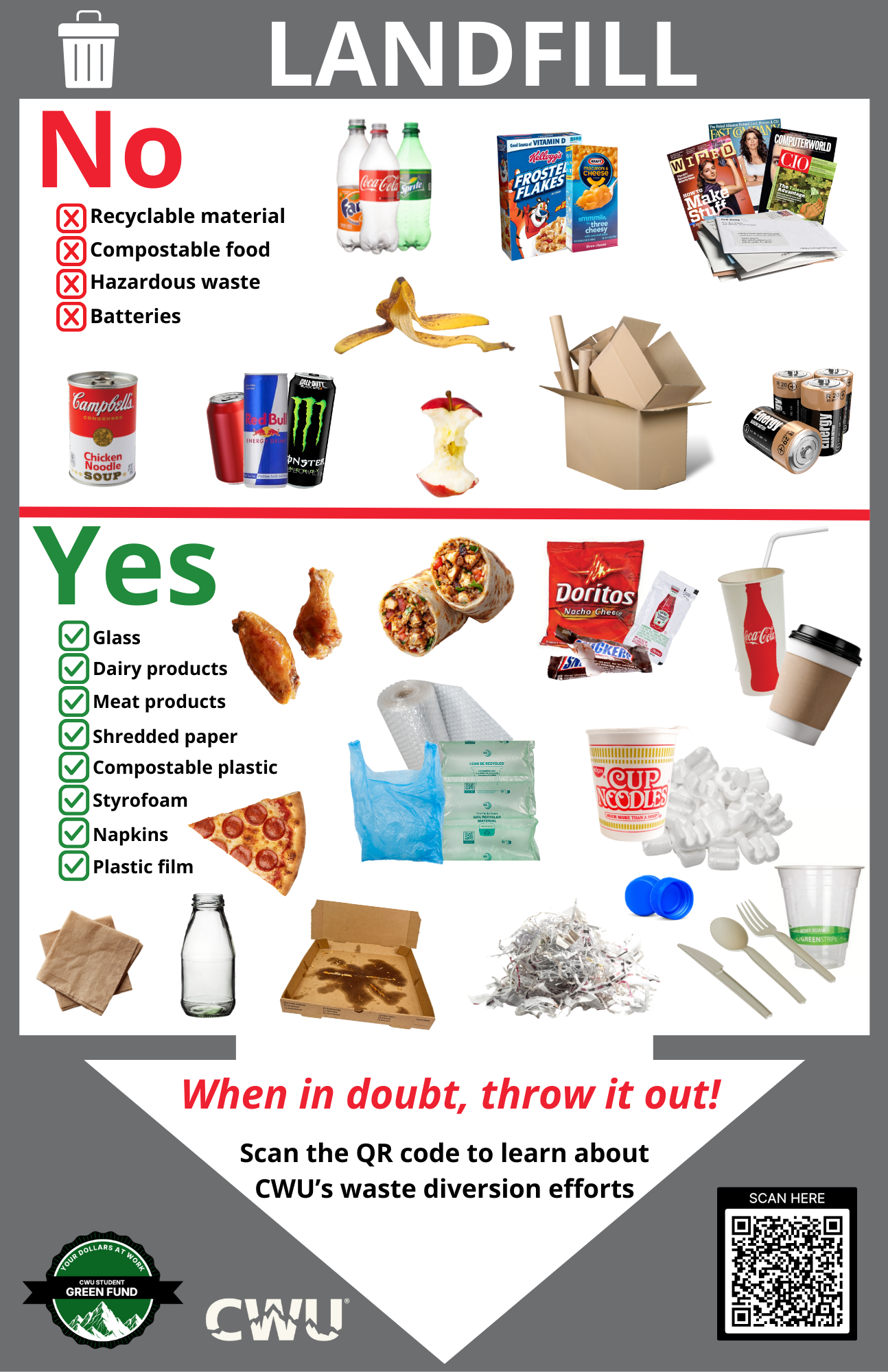 CWU is committed to promoting sustainable practices and reducing the amount of waste generated on campus. Check out the latest updates and resources below as we work to divert over 25% of the waste generated on campus from entering the landfill by 2030.
