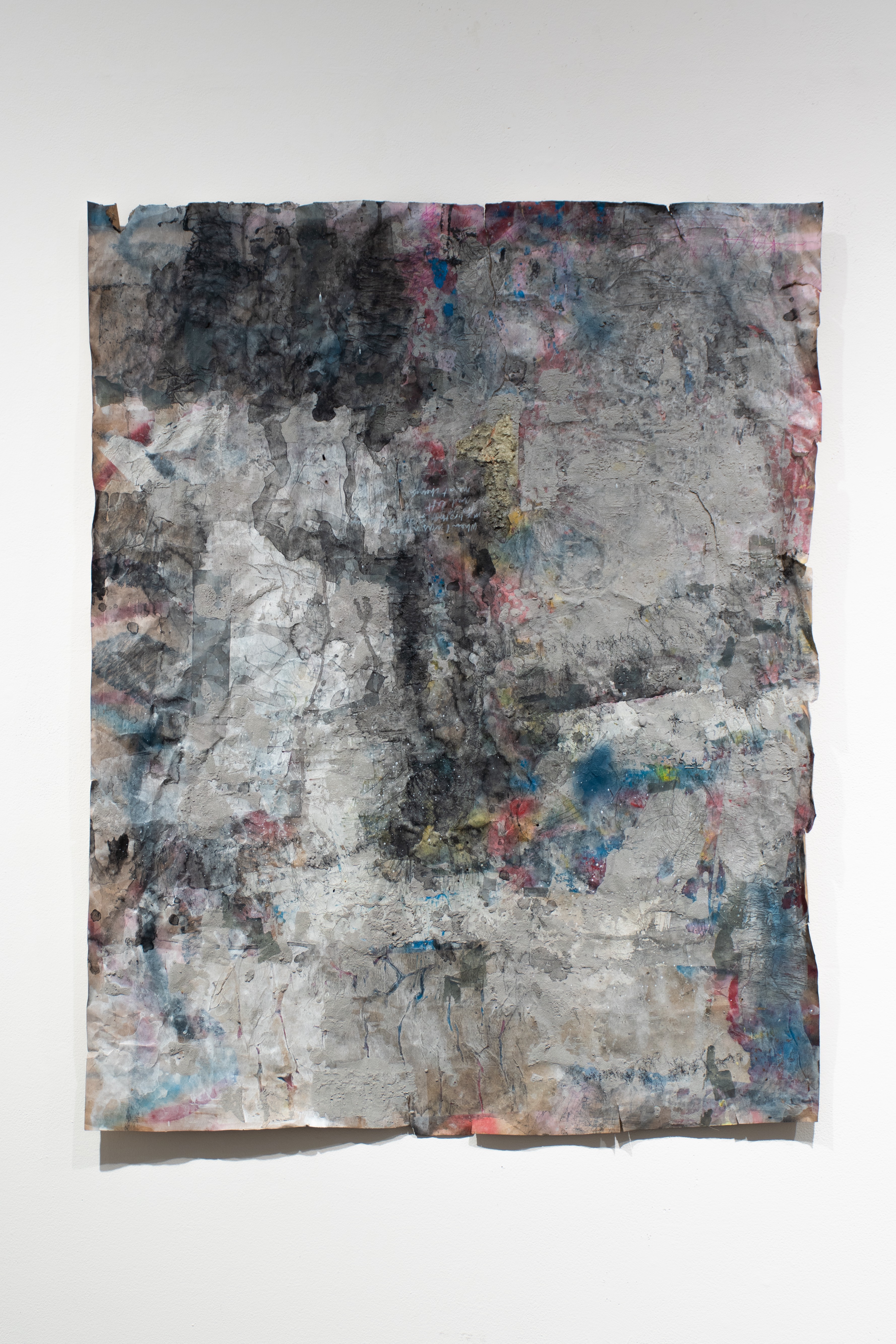 Matthew Potter, Petrichor, 2023, Acrylic, atomized charcoal, colored pencil, concrete, and spray paint on paper, 35 in. x 48 in.