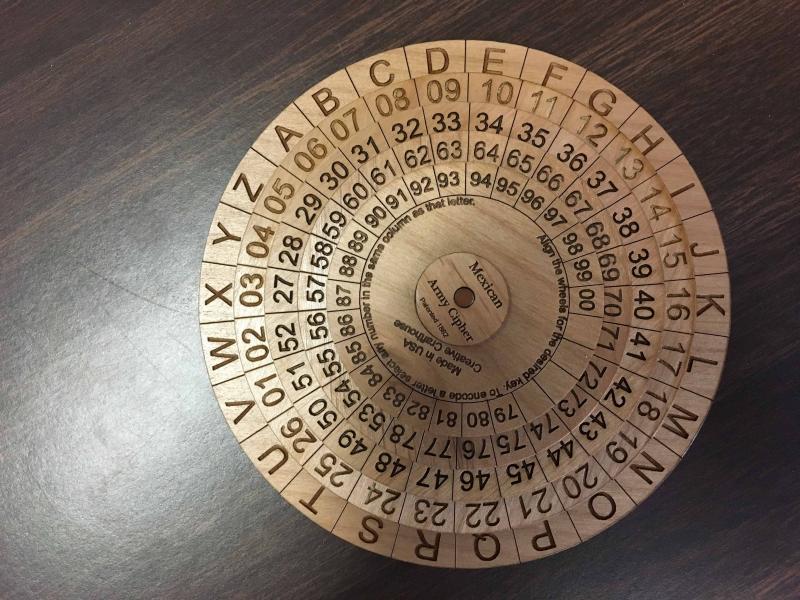We recently identified one of these individuals and managed to gain entrance to his apartment. It was mostly cleared out, however we found a very odd Tax Form in a drawer with a wooden cipher machine. The cipher machine has a stationary outer ring showing all 26 letters of the alphabet. There are also four “inner” rings which rotate freely. The numerals 1-100 seem to be represented on these movable disks. I’ll send you a copy of the Tax Form and a picture of the cipher machine we found in the hopes that you can make some sense of it all. We’re pretty sure that there is an upcoming meeting or arms delivery and we hope that we can catch the entire gang at that time. Please help us out as quickly as you can!