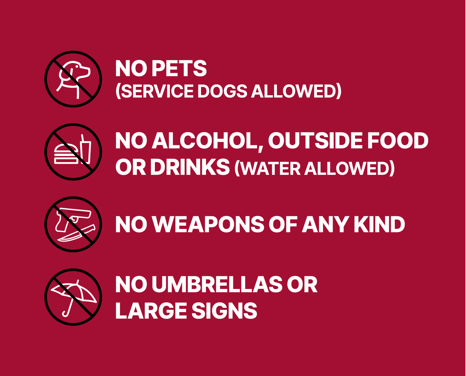 ADA seating is located on the southwest side of the field near the main entrance. Please look for signs. Each guest is allowed ONE companion seat in the ADA section. There are a limited number of wheelchair seats in the stadium grandstands, outside of the ADA section. These are available on a first-come, first-served basis and will fill quickly.